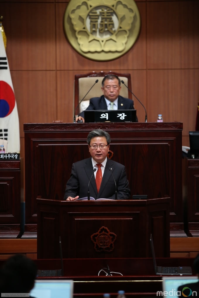 (미디어온) 채인석 화성시장은 지난 22일 제150회 화성시의회 임시회에서 2016년 시정운영 방향으로 ‘최고의 준비된 미래 도시’, ‘세계인이 찾아오는 문화관광 중심도시’, ‘희망을 주는 사회적 경제 중심도시’, ‘대한민국 1등 교육중심도시’, ‘나눔과 배려가 있는 복지중심도시’를 만들고, ‘시민중심의 소통과 현장행정’을 펼쳐나가겠다고 밝혔다.
