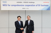 [산업경제뉴스 강민구 기자] 포스코그룹과 일본 혼다社가 전기차 사업분야에서 포괄적인 협력 체계를 구축키로 했다. 포스코그룹과 혼다는 11일 서울 포스코센터에서 최정우 포스코그룹 회장, 미베 토시히로 혼다 사장을 포함한 양사 주요 경영진들이 참석한 가운데 ‘전기차 사업에 대한 포괄적인 양해각서(MOU)’를 체결하고, 지속 성장할 것으로 전망되는 글로벌 전기차 시장에 대응해 양사가 적극 협력하기로 합의했다. 시장 전망에 따르면 글로벌 전기차 수요는 2023년 약 1,357만 대에서 2025년 약 2,236만대, 2030년에는 약 5,900만 대에 달할 정도로 가파르게 성장할 것으로 추정된다. 이에 양사는 기존 철강부문에서의 협력을 강화하고, 이차전지소재 부문에서도 양·음극재, 전고체전지용소재, 리사이클링 등의 분야에서 새롭게 협력하는 방안을 논의하기로 했다. 우선 이차전지소재 부문에서 양사는 양·음극재 공급 등 협력을 검토하기로 했다. 전고체전지용소재는 사업과 기술 분야에서 주기적인 교류회 등을 통해 공동 기술 개발을 추진하기로 하고, 리사이클링 역시 향후 혼다의 전기차 비즈니스 및 포스코그룹의 글로벌 리사이클링사업과 연계 방안을 마련하기로 했다. 철강부문에서도