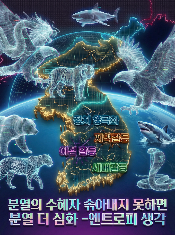 대한민국 국민 ‘분열’의 수혜자들은 이 ‘한반도 분열 미분 방정식’에 또아리를 튼 최상위 포식자들이다. 극단적 ‘분열’의 수혜자들은 한반도 구성원 모두에게 극한값까지 분열할 알고리즘을 코딩해 놨다.