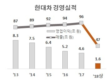 현대자동차는 올해 상반기 영업이익률이 3.46%를 기록했다. 2년 만에 수익성이 반토막이 났다.