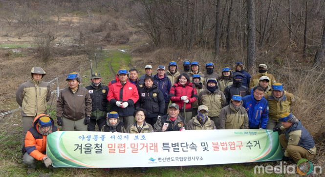 (미디어온) 국립공원관리공단 변산반도국립공원사무소는 겨울철 야생동물 서식지 보호를 위해 관계기관 합동으로 밀렵·밀거래 방지 캠페인 및 불법엽구 수거활동을 실시하였다고 밝혔다.
