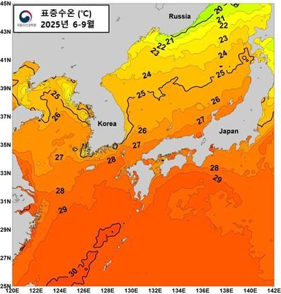 올해 고수온 특보기간은 7월 9일부터 10월 1일까지 총 85일간 이어지며 역대 최장기간을 기록했다. 7월에서 9월까지 평균 수온은 26.8~27.8℃로 평년 대비 2~4℃ 높아 작년과 유사한 고수온 경향을 보였지만, 연안은 해역에 따라 큰 차이를 나타냈다.
