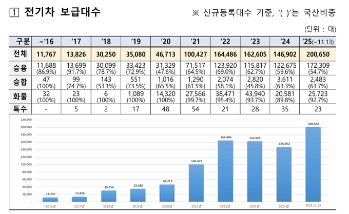 ![기후에너지환경부는 올 11월 13일 기준으로 국내 연간 전기차 보급 대수가 20만 대를 달성했다고 14일 밝혔다. 자료는 전기차 보급대수 [자료= 기후에너지환경부]](http://www.biznews.or.kr/data/photos/20251147/art_17634483223809_61de16.png)