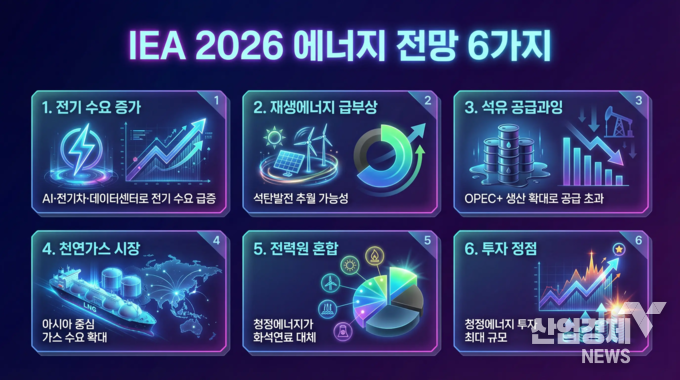 국제에너지기구(IEA)가 ‘2025 세계 에너지 전망(World Energy Outlook 2025)을 기초로 2026년 시장을 전망한 바에 따르면, 지구촌 에너지 수요가 전반적으로 증가하고 재생에너지가 부상한다.