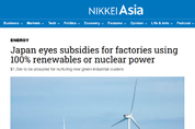 [산업경제뉴스 손영남 기자] 일본 정부가 재생에너지와 원자력으로만 전력을 공급받는 공장에 보조금을 지급하는 방안을 추진하고 있다. 이는 기업의 탈탄소 전환을 촉진하고 에너지 안보를 강화하려는 의도지만, 원자력 포함 여부를 둘러싼 논란으로 인해 시작부터 혼란을 자초하고 있다. 탄소중립 달성을 위한 제반 정책이 흔히 빚는 논란이다. 이런 풍경은 사실 그리 낯설지 않다. 화석연료 의존으로 탄소중립 달성에 어려움을 겪는 한국 역시 종종 겪는 일이기 때문이다. 한국 역시 원자력 활용을 둘러싼 사회적 논쟁 속에서 에너지 전환 전략을 모색하고 있어, 이번 일본의 시도는 우리에게도 중요한 시사점을 던진다. ◆ 5년에 걸쳐 2조원 규모의 보조금 지원 카드 ‘만지작’ 아시아 뉴스를 전문적으로 다루는 일본의 경제지 ‘니케이 아시아’는 22일, 일본 경제산업성이 재생에너지 또는 원자력으로 전력 수요를 100% 충당하는 공장에 보조금을 지급하는 방안을 공식적으로 검토하고 있다고 보도했다. 이번 정책은 태양광·풍력·원자력 발전을 활용해 제조업체의 전력 조달을 청정에너지로 전환하도록 유도하는 것을 목표로 하고 있으며, 특히 전력 사용량이 많은 대형 공장이 주요 지원 대상이 될 것으로